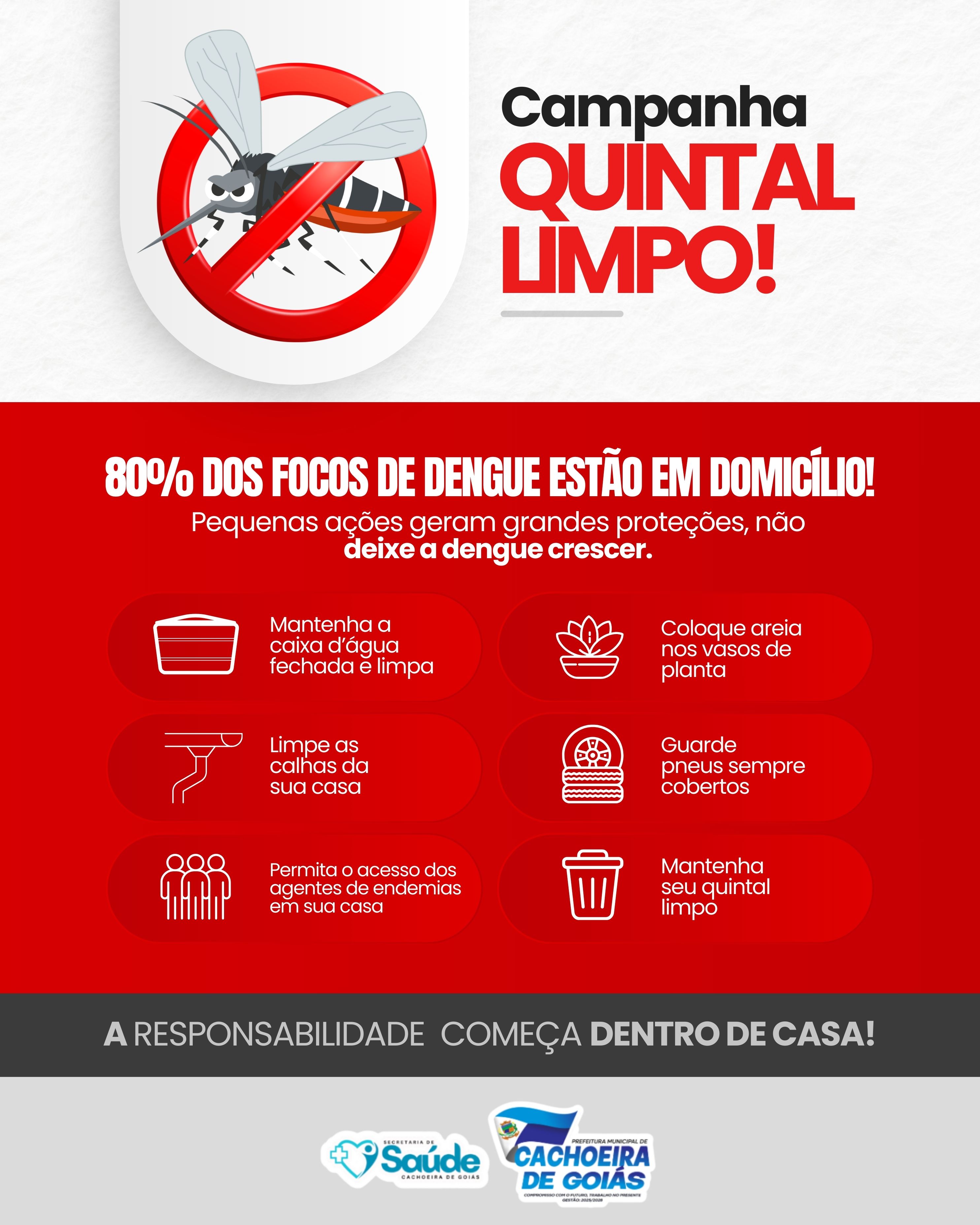 Campanha Quintal Limpo! Pequenas ações geram grandes proteções, não deixe a dengue crescer.